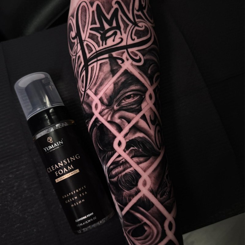 Formulated with soothing, skin-safe ingredients, Yumain Tattoo Cleansing Foam helps reduce redness and irritation while keeping skin hydrated during and after tattoo sessions. No harsh chemicals. No fragrance. Just clean, professional results.
