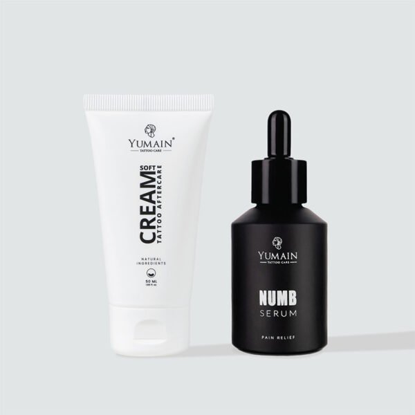 Getting tattooed is intense — your aftercare should be effortless. The YUMAIN Numb Serum helps ease the discomfort mid-session, so you can sit longer with less stress. Then the Cream steps in: rich, clean, and calming, made to soothe dry or irritated skin without clogging or leaving a greasy film.