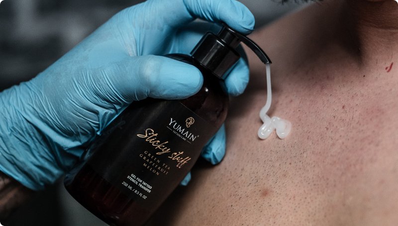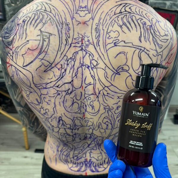 Hi! I am tattoo artist from Latvia with 6 years of tattoo experience. I need to say I really like to work with yumain tattoo care. First of all – their provided service. Fast delivery, helping with any problem. Products are with really good quality of the outside/inside. Sticky stuff is best thing for tattoo transferring. Also I need to say, that I think second skin from yumain is the most amazing second skin on the market. thank you for your products!
