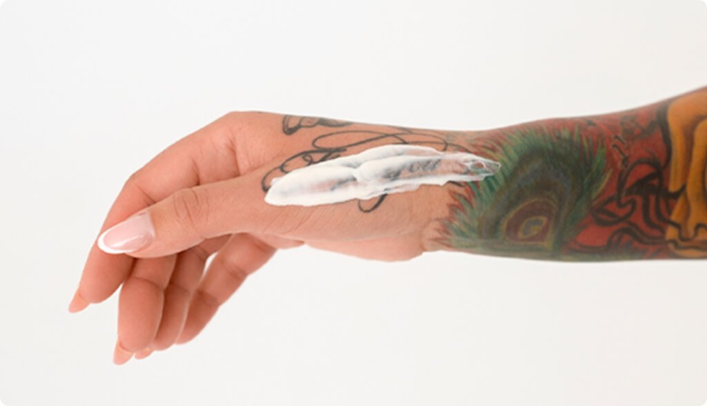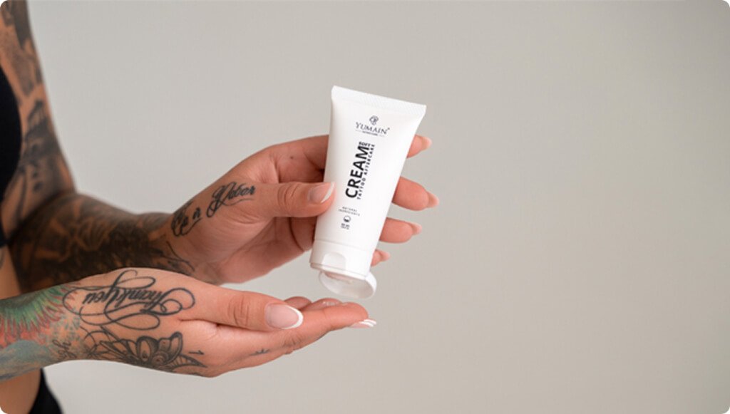 During the initial four days after getting a tattoo, it is essential to maintain proper hygiene to prevent any infections. To do so, it is recommended to wash the tattooed area twice a day. The cleaning process should involve using Yumain Hyaluronic acid washing foam that doesn't contain any fragrances or alcohol. After washing the tattoo, it is essential to pat it dry with a clean towel gently. When applying the balm, it is not necessary to wash the tattooed area again. Instead, apply the balm to the tattooed area using clean hands. The cream should be applied in a thin layer to avoid over-saturating the tattoo. By following these steps, you can ensure that your tattoo remains clean, healthy, and vibrant.